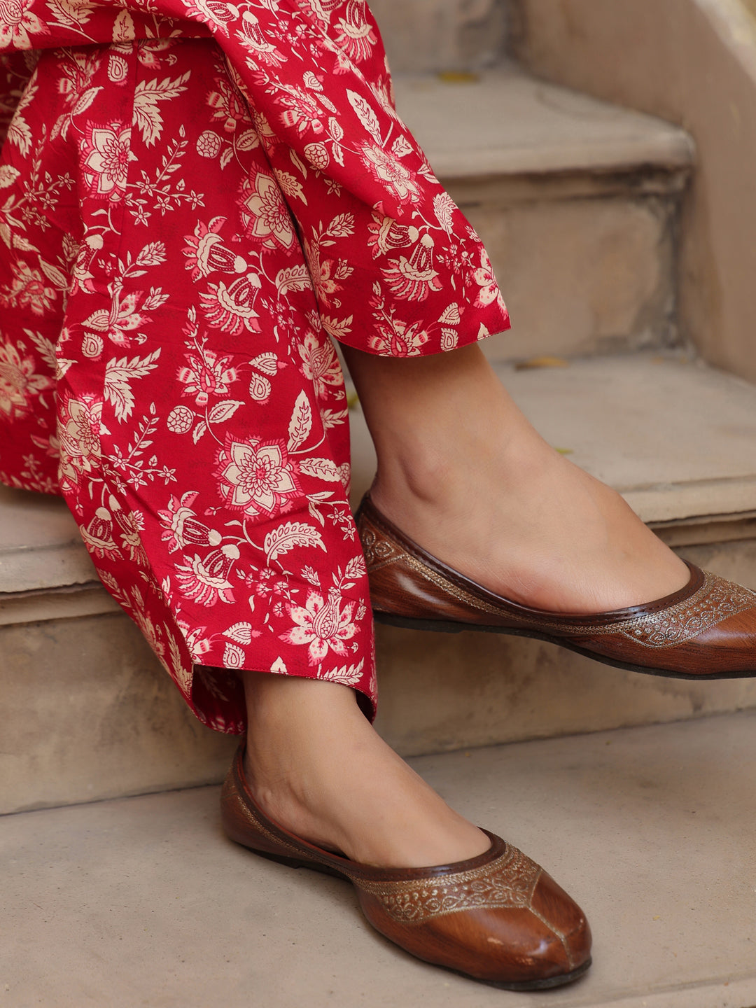 This Kurta Set has a V neck, 3/4th flared sleeves with slits kurta with a corset back and a printed salwar having a fully elasticated waist band.