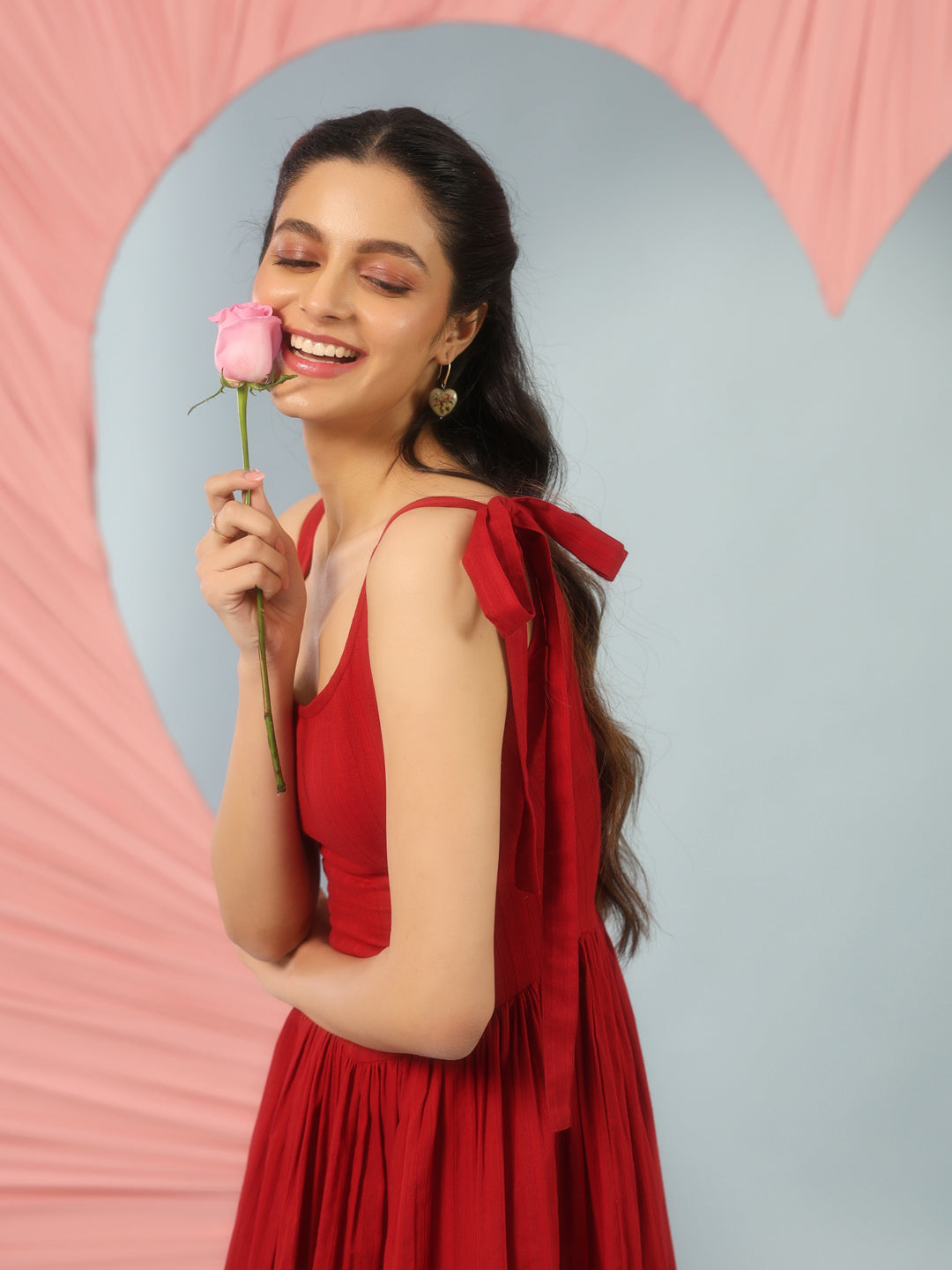 Women's Red Long Dress with Corset Back