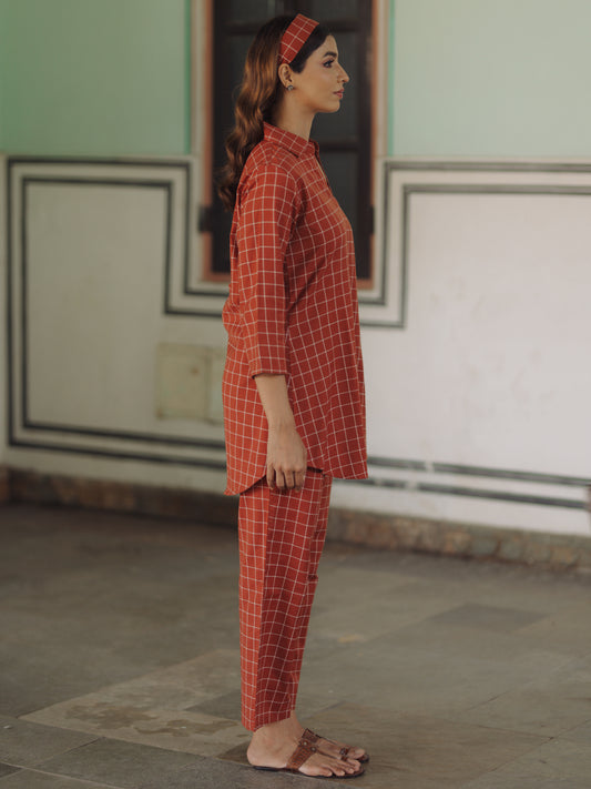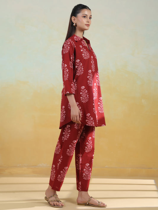 | Women's Maroon Cotton Collared Short Kurta Top with Trousers | Rs. 1,120 |