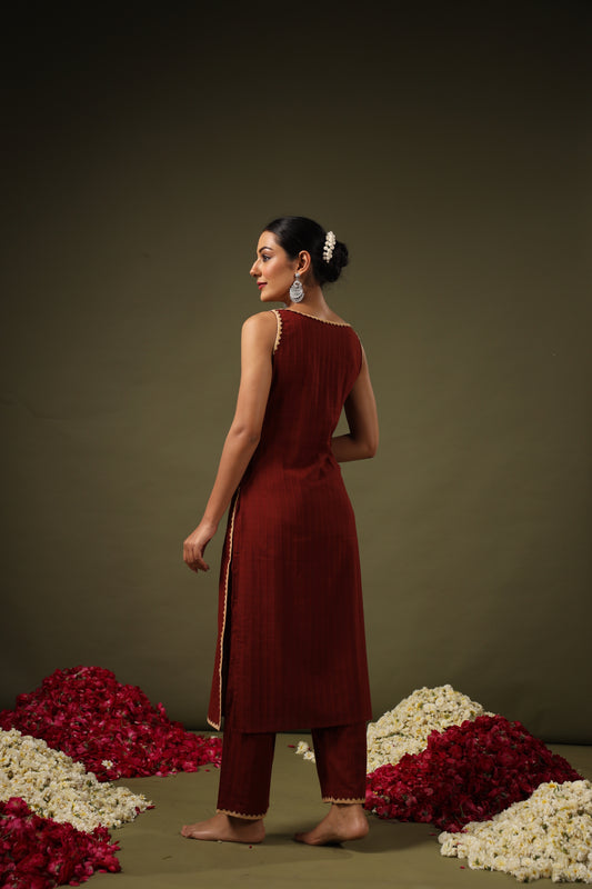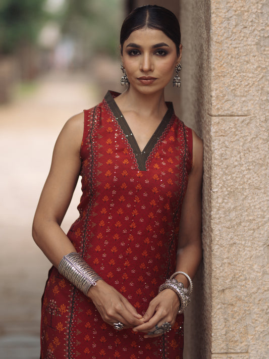 | Women's Maroon Cotton Kurta Set with Printed Chanderi Dupatta | Rs. 1,397 |