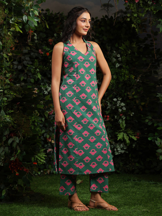 | Women's Green & Pink Printed Cotton Suit Set | Rs. 1,041 |