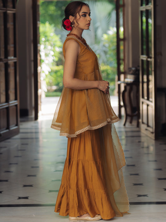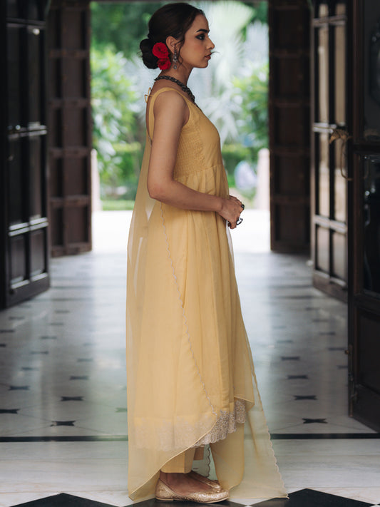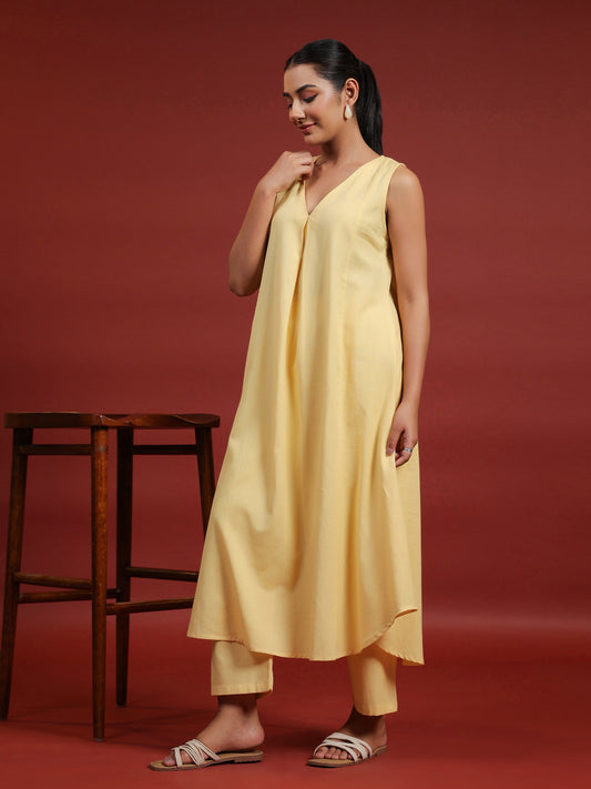 | Women's Mustard Cotton Boat neck Sleeveless Kurta with Trousers | Rs. 1,165 |