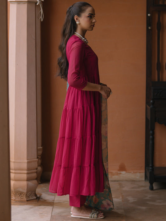 | Women's Dark Pink Georgette Kurta Set With Dupatta | Rs. 2,097 |