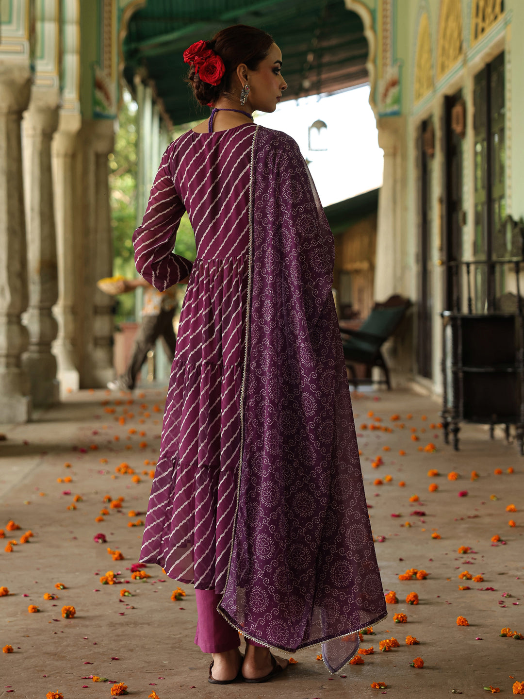 Women's Leheriya Tiered Angrakha Kurta Set